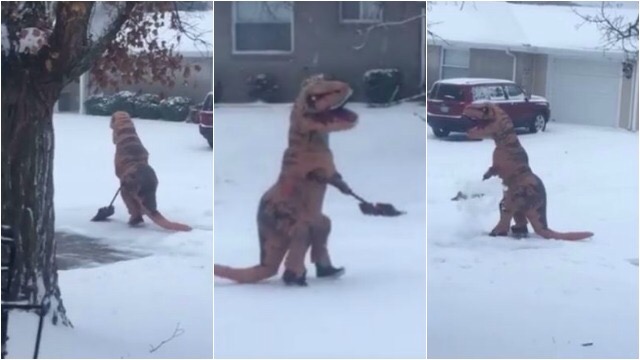Vecinos del estado de Kentucky, en EE.UU., se han burlado de un hombre que salió a las calles vestido de dinosaurio para limpiar la nieve que ha dejado la tormenta «Snowzilla». El video, grabado por la esposa de protagonista, se ha vuelto velozmente viral en la red social Facebook.